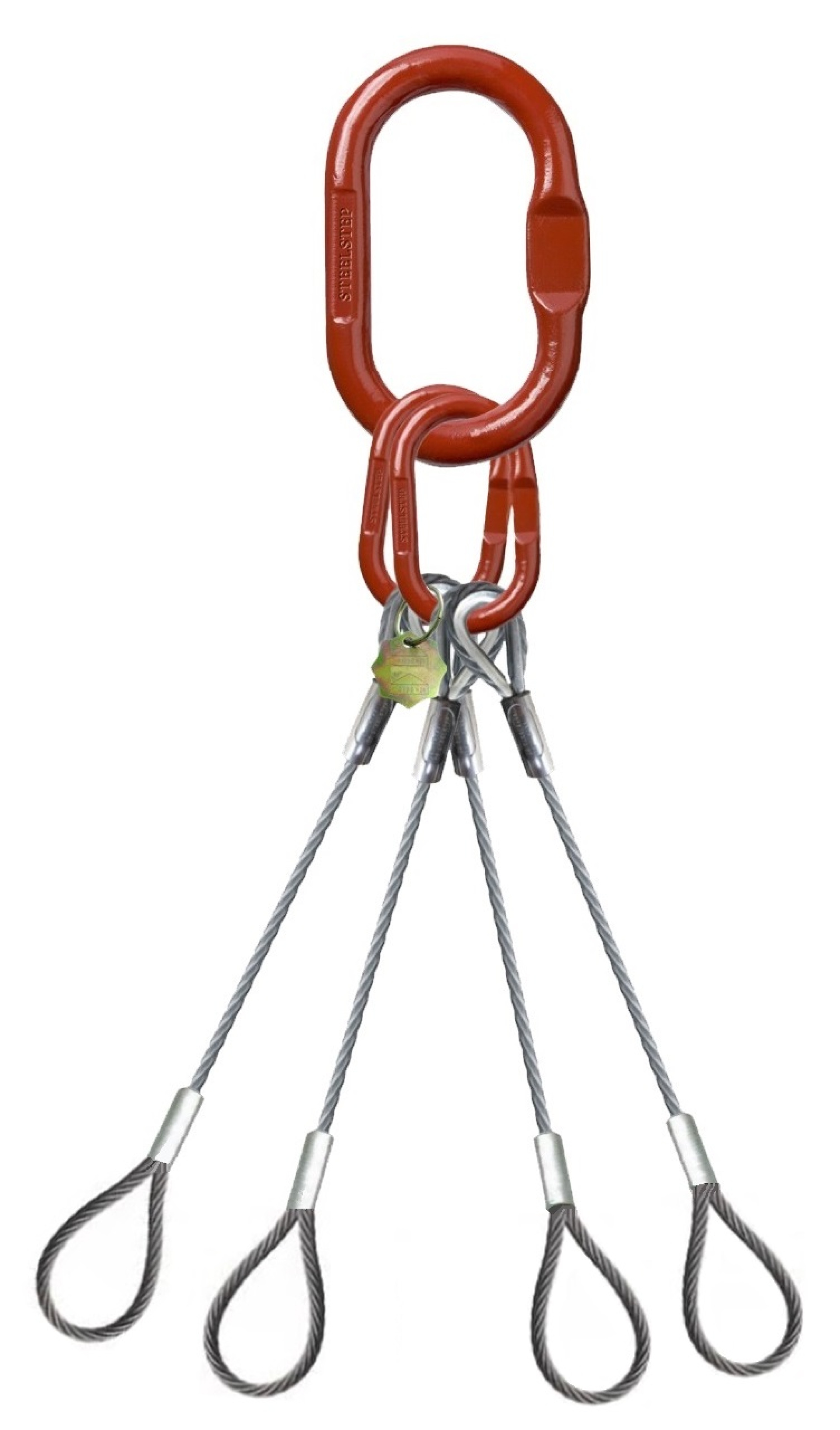 A 4 ágú sodronykötél függeszték alul füllel van szerelve. Az acélsodrony függesztékek az EN 13414 szabvány előírásainak megfelelően készülnek. A gyártást és az ellenőrzést a fennt nevezett szabvány, valamint a minőségbiztosítási rendszerünkben rögzített eljárási utasítás szerint végezzük. A sodronykötél függeszték teherbírása az átmérőtől függően, 700 kg-tól 36000 kg-ig. Amennyiben a megfelelő termék kiválasztásával, műszaki alkalmasságával kapcsolatban kérdése van, forduljon szakembereinkhez! Telefon: 06 (52) 316-319