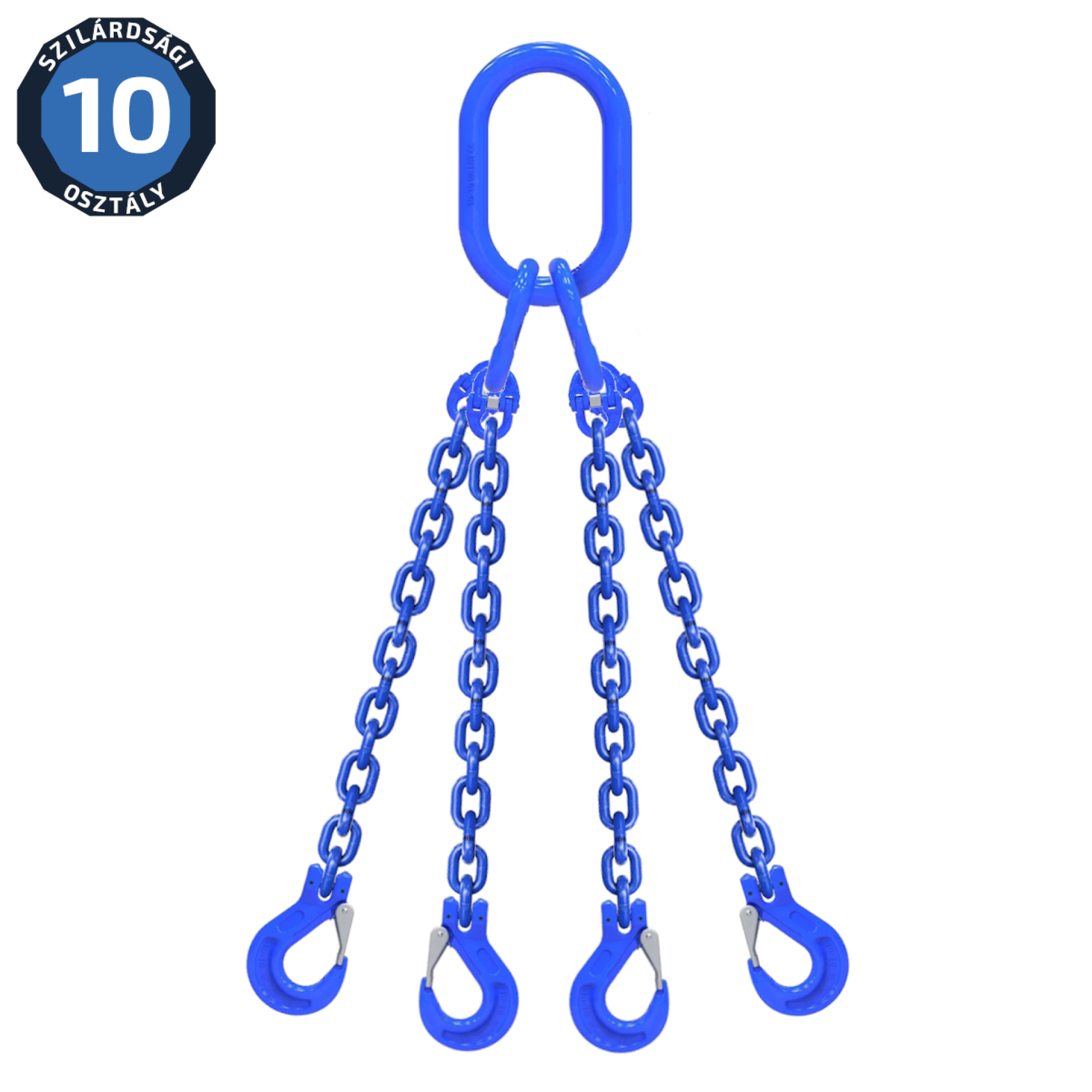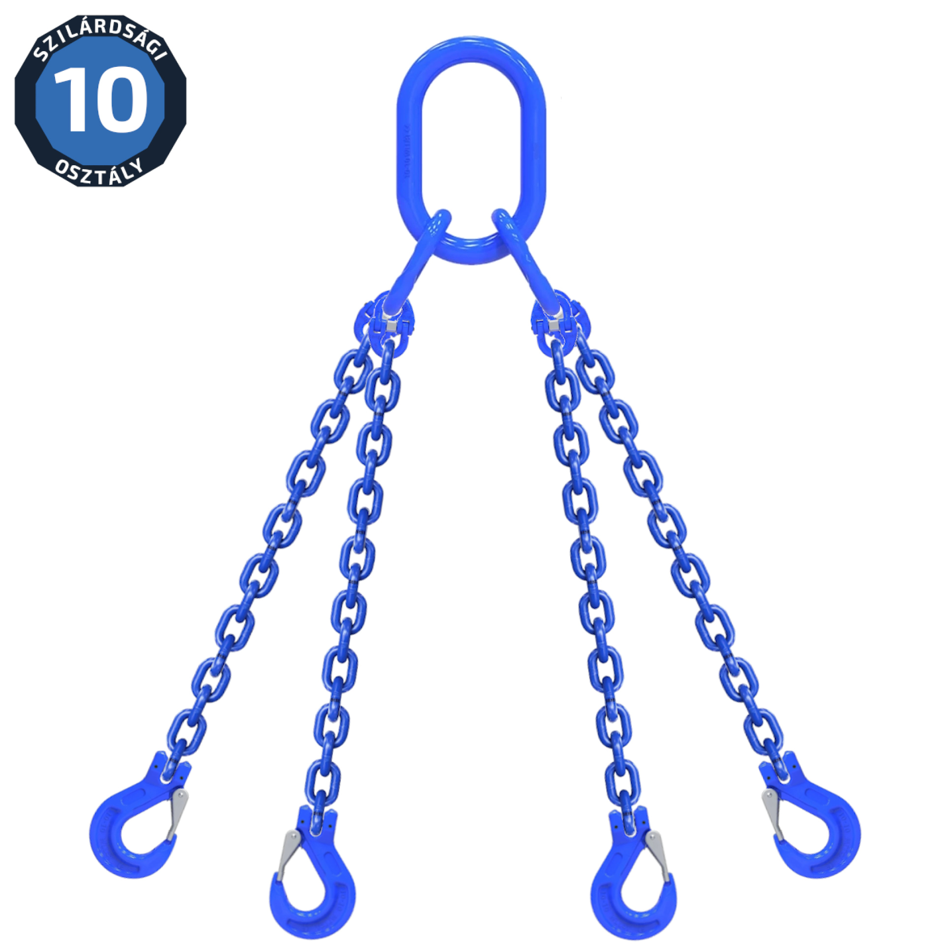 A G100-as anyagminőségű láncfüggesztékek jellemzője, hogy ugyanazon átmérő mellett 25%-kal nagyobb a teherbírása, mint a G80-as anyagminőségű láncfüggesztékeknek. MSZ EN 818-4 szabvány szerint készülnek, ezeket a függesztékeket ugyanazokra a feladatokra használjuk, mint a sodronykötélből vagy poliészterszálas kötélből készült függesztékeket. -40oC és +200oC között használható, anélkül, hogy a teherbírásából veszítene. További előnyük, hogy a függesztékek elemei nehézség nélkül cserélhetőek. Rövidítő horoggal szerelve a láncfüggesztékek hossza könnyen és biztonságosan a teher geometriájához és súlypontjához igazítható. Hitelesített próbapadunkkal a gyártás minőségét ellenőrizzük, és 32 t terhelésig vállaljuk a függesztékek időszakos felülvizsgálatát. Időszakos felülvizsgálat vagy teljes vizsgálat esetén, a vizsgálatról naplót kell vezetni! Amennyiben a megfelelő termék kiválasztásával, műszaki alkalmasságával kapcsolatban kérdése van, forduljon szakembereinkhez! Telefon: 06 (52) 316-319
