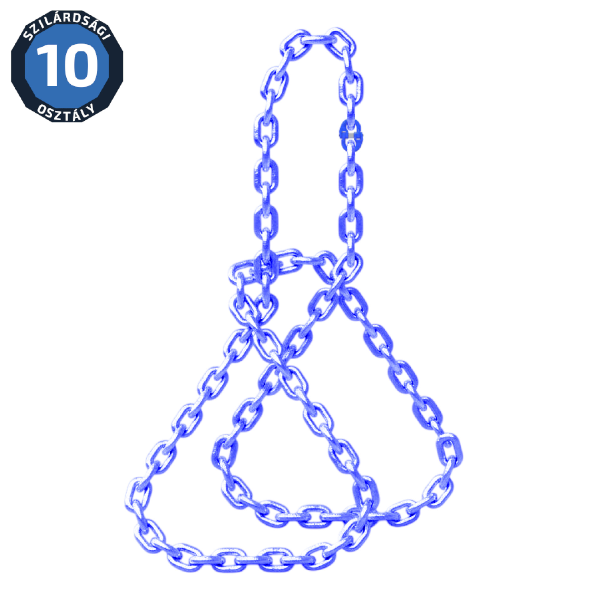 A G100-as anyagminőségű láncfüggesztékek jellemzője, hogy ugyanazon átmérő mellett 25%-kal nagyobb a teherbírása, mint a G80-as anyagminőségű láncfüggesztékeknek. MSZ EN 818 - 4 szabvány szerint készülnek, ezeket a függesztékeket ugyanazokra a feladatokra használjuk, mint a sodronykötélből vagy poliészterszálas kötélből készült függesztékeket. -40oC és +200oC között használható, anélkül, hogy a teherbírásából veszítene. További előnyük, hogy a függesztékek elemei nehézség nélkül cserélhetőek. Hitelesített próbapadunkkal a gyártás minőségét ellenőrizzük, és 32 to terhelésig vállaljuk a függesztékek időszakos felülvizsgálatát. Amennyiben a megfelelő termék kiválasztásával, műszaki alkalmasságával kapcsolatban kérdése van, forduljon szakembereinkhez! Telefon: 06 (52) 316-319