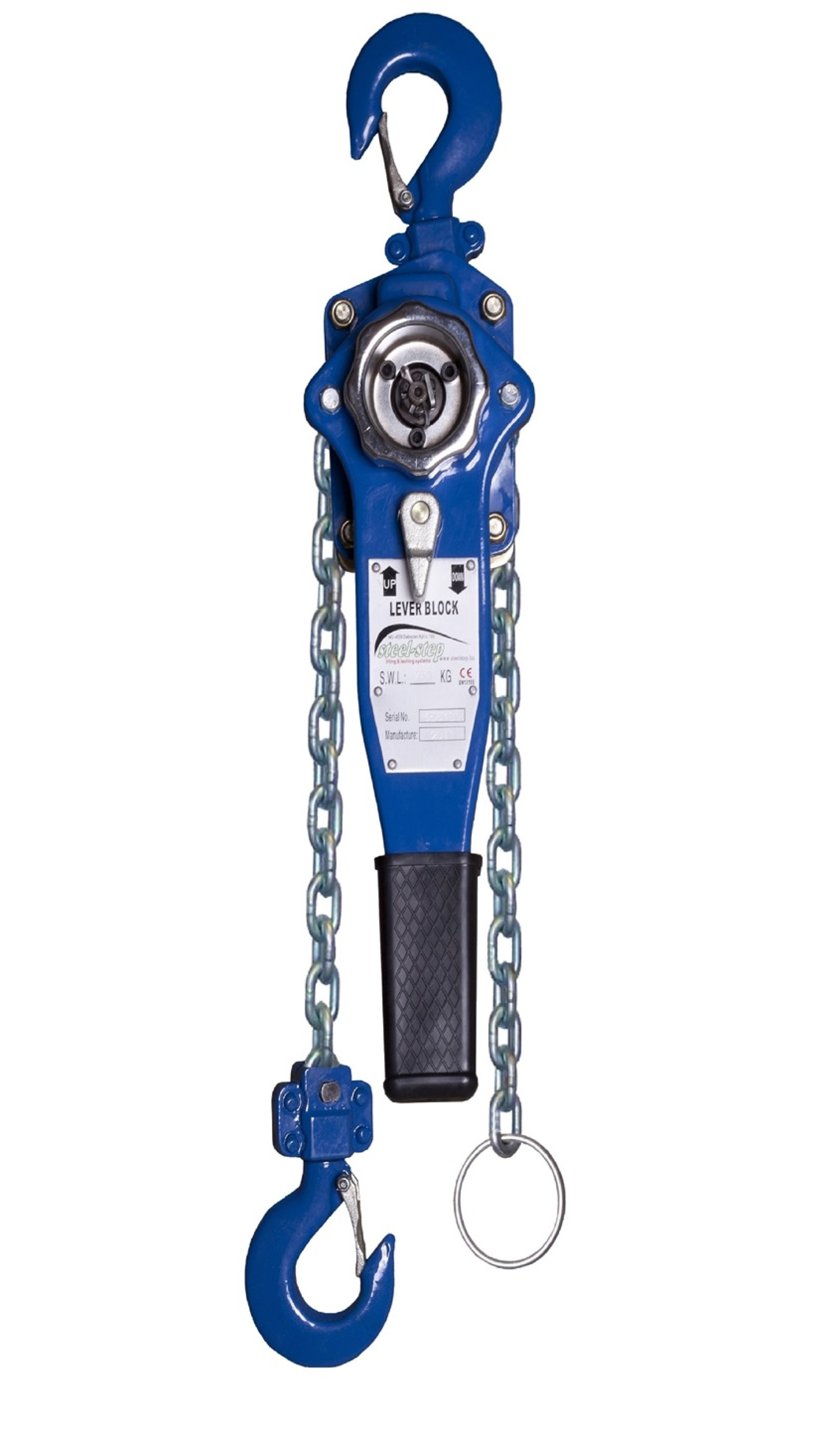 Megfelel a 2006/42/EK gépekről szóló irányelvnek. Vizsgálati tanúsítvánnyal, CE megfelelőségi nyilatkozattal és kezelési utasítással szállítjuk. Felhasználás: rendkívül sokoldalú és hatékony emelőszerkezet, széleskörű alkalmazást tesz lehetővé. Különböző emelő és húzó műveletek elvégzéséhez. A Steel-Step egy kiváló minőségű  karos láncos emelő, tartós és könnyen kezelhető az ergonomikus ütőkar segítségével. A standard emelési magasság 1,5 m. Egyéb emelési magasságok is elérhetőek gyors szállítási idővel raktárról. Minden emelő dinamikus terhelésálló 1,5 x WLL teszten van tesztelve, mielőtt elhagyja a gyárat. A lánckerék tűcsapágyakkal és hajtótengellyel van felszerelve, amelyet tűcsapágy és csúszócsapágy támaszt meg a sima és hatékony működés érdekében. Biztonságos, jól fedett automatikus terhelésreakciós fék 2 fékpofával és 4 fékrugóval felszerelt (kettős biztonság az EN 13157 követelményeihez képest). Az egyedülálló felületkezelés kiváló korrózióvédelmet és alacsony üzemi térfogatot biztosít. A két végén lévő forgó kampók megkönnyítik a sorban történő elhelyezést. A horgokat úgy tervezték, hogy túlterhelés esetén kinyíljanak, ahelyett, hogy eltörnének nagy teherbírású acél biztonsági reteszekkel szerelt horgok. A horog oldalán deformáció-ellenőrző pontok vannak kovácsolva a túlterhelés észlelése érdekében. Amennyiben a megfelelő termék kiválasztásával, műszaki alkalmasságával kapcsolatban kérdése van, forduljon szakembereinkhez!  Telefon: 06 (52) 316-319