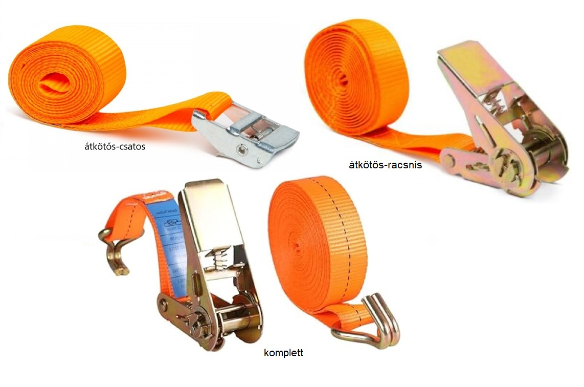 Igény szerint bármely hosszban, saját műhelyünkben gyártjuk rakományrögzítőinket. Az ajánlott típusok kétféle kivitelben kerülnek kiszerelésre: Hegyeshorgos kivitel (hh): egy darab rövid ágból (0,5 m egyik végén feszítőszerkezet, másik végén horog), illetve egy darab ún. hosszú ágból (3-20m egyik végén horoggal) áll. Vagy horog nélküli kivitel (hn): egyik végén feszítő szerkezettel vagy csattal (hosszúság: 3-20 m). 25 mm széles narancs vagy fekete hevederanyagból készül. Gyártva: EN 12195-2 szabvány szerint, TÜV és CE jelöléssel. Fokozottan ügyeljen a heveder nyúlási paraméterére, amely szabvány szerint max. 7%. Segítünk a fuvarozóknak kiválasztani a megfelelő anyagokat a rakomány rögzítéséhez, valamint készséggel adunk tanácsot a rögzítéssel és a szállítás biztonságával kapcsolatban. Alkalmazási terület: Közúti, vasúti, vízi és légi szállításnál valamint az üzemi anyagmozgatásnál a rakományok gyors és biztonságos rögzítésére. Javaslat: sarokvédő használatával a rögzítési biztonság fokozható, az élettartam meghosszabbítható. Amennyiben a megfelelő termék kiválasztásával, műszaki alkalmasságával kapcsolatban kérdése van, forduljon szakembereinkhez! Telefon: 06 (52) 316-319